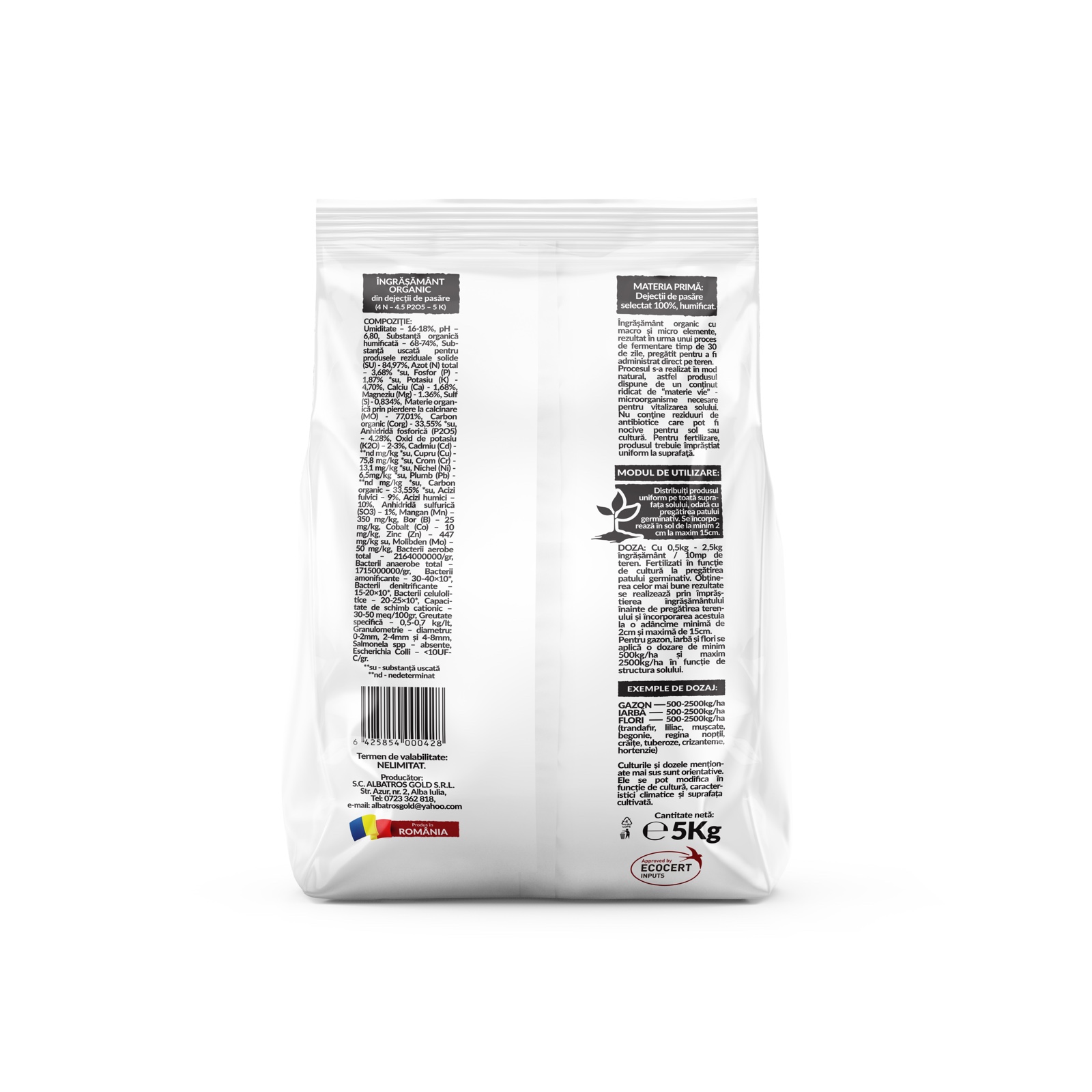 Fermele moderne si echipamentele de ultima generatie ale Albatros Gold asigura nu doar conditii optime pentru cresterea si ingrijirea pasarilor, ci si o productie eficienta si sustenabila a ingrasamantului organic pentru gazon / iarba / flori. Prin aceasta initiativa, Albatros Gold demonstreaza inca o data ca poate aduce inovatie in domenii multiple si poate raspunde cerintelor in continua schimbare ale pietei.